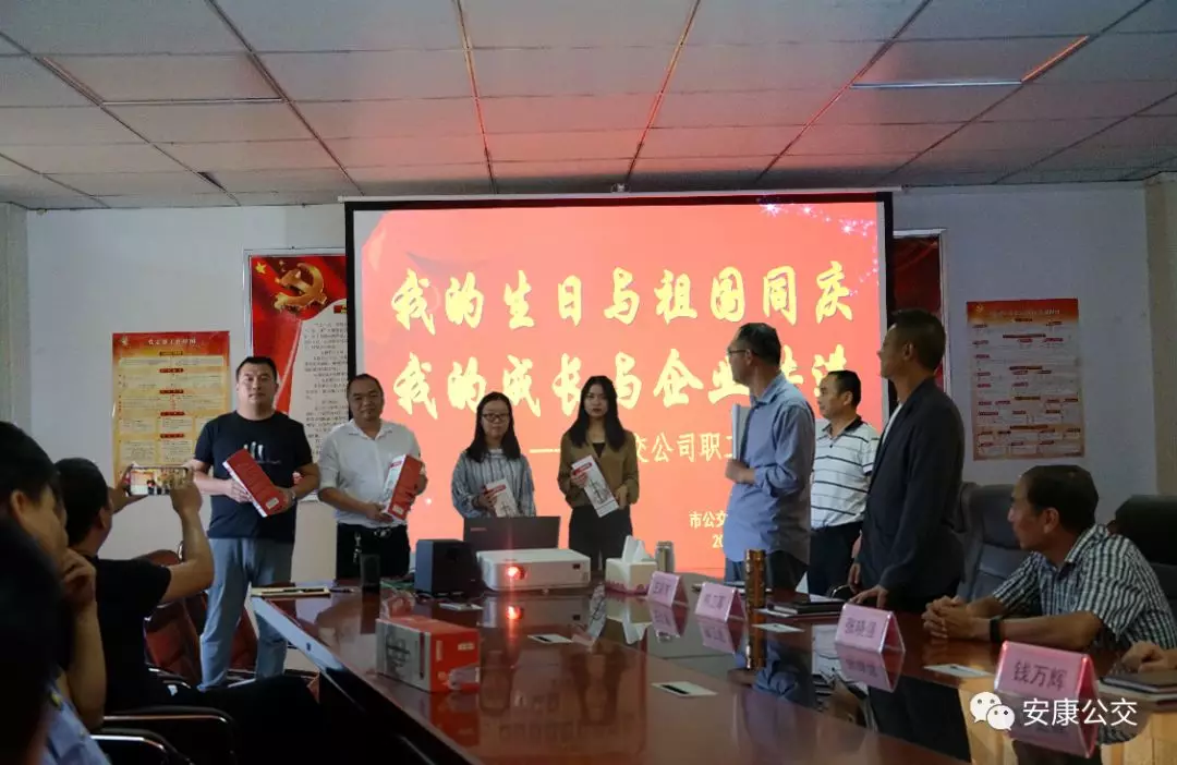 点点官网精细谋划,在办公楼前悬挂国旗,在公交车LED显示屏滚动播出“热烈庆祝中华人民共和国成立70周年”视频,在公交车身张贴国旗,还举办以“我的生日与祖国同庆,我的成长与企业共进”为主题的职工集体生日会,营造喜庆、欢乐、祥和的节日氛围。