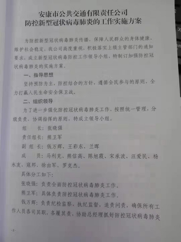 在节日前夕,公司召开疫情防控工作紧急部署会,成立新型冠状病毒肺炎防控工作领导小组,部署防控疫情工作,要求各部门要本着“严密防控疫情、确保春运安全”的工作思路,全力以赴做好防控工作,发现问题第一时间上报,保证公交乘车环境安全。