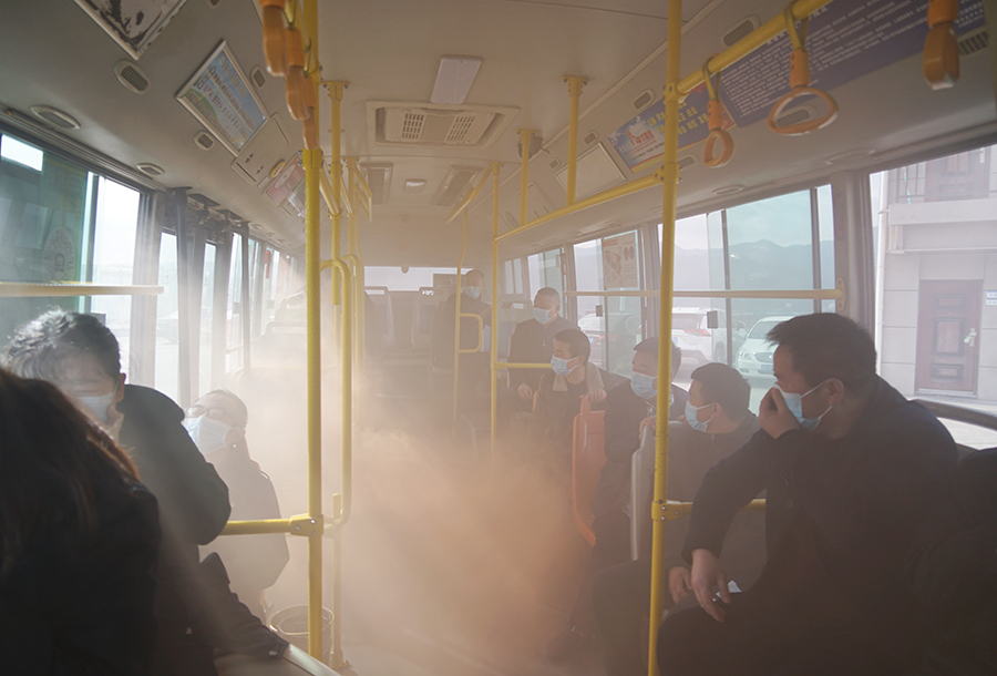 公交车动态安全演练模拟一辆正在行驶中的公交车,驾驶员突然闻到车内有异味,发现车辆尾部发动机舱在冒烟,驾驶员随即打开紧急双闪灯,启动车内智能监控报警,向公司智能调度中心报警,并立即靠边停车,打开前后车门,疏导乘客从前后门有序下车,远离车辆。