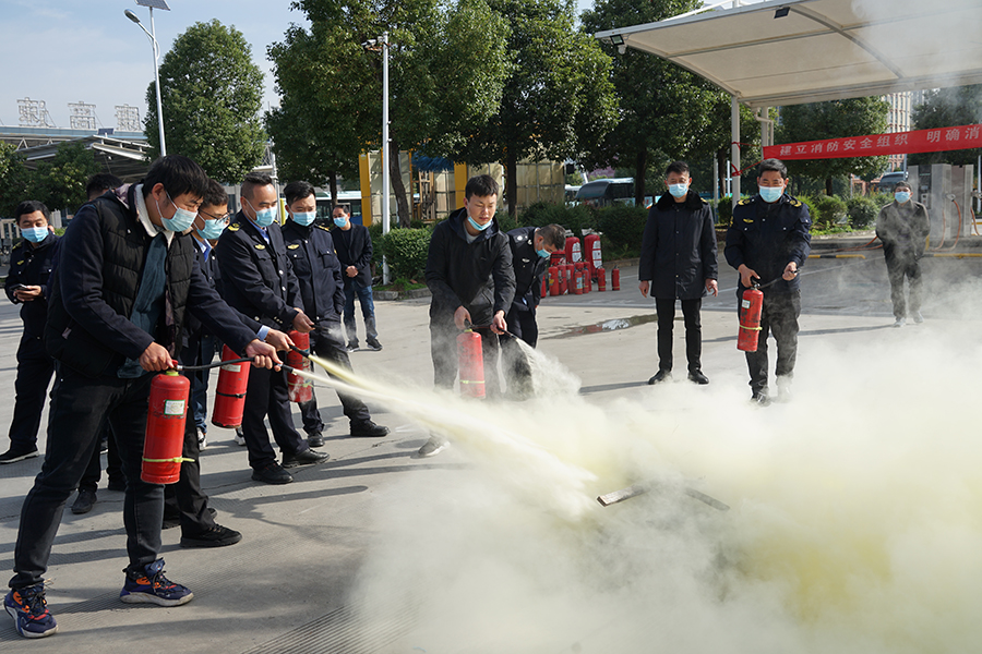 防火防爆演练结束后,公司安全运营部负责人对演练进行了点评,现场讲解灭火器正确使用方法并进行油桶灭火实操,驾驶员通过实际操作掌握其使用方法。
